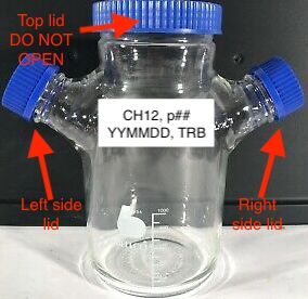 - Label a piece of thick masking tape with cell line (CH12), passage number, date, and initials in black sharpie.