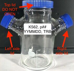 - Label the 15 mL conical tube and two pieces of thick masking tape with cell line (K562), passage number (p1 for seeding), date, and initials in black sharpie.