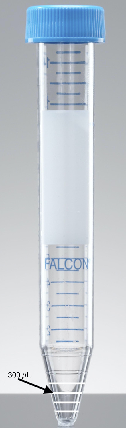 - Note: 300 µL of beads refers to filling 15 mL Falcon polystyrene tube up to third tick from bottom of the tube, corresponding to 300 µL (see below).